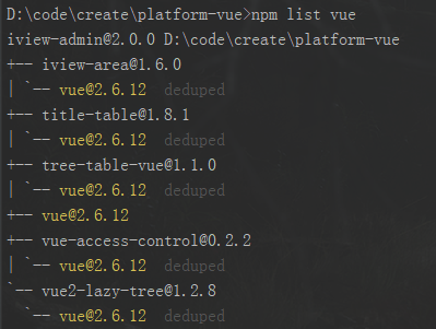 在安装 webpack-bundle-analyzer 分析包之前,在项目中可以通过 npm list vue 查看项目所使用的 @vue 版本以及运行 vue -V 查看项目所使用的 @vue/cli 版本。